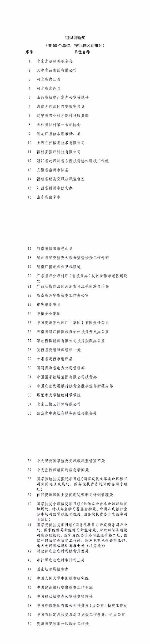 根據國務院扶貧開發領導小組印發的《2020年全國脫貧攻堅獎評選表彰工作方案》,產生2020年全國脫貧攻堅獎獲獎建議名單,其中包括100名個人和50個單位。為充分發揚民主,廣泛聽取意見,接受社會監督,現將2020年全國脫貧攻堅獎獲獎建議名單予以公示。如對獲獎建議名單有異議,請通過全國扶貧監督舉報電話12317進行反映。受理時間為上午8:30至12:00,下午13:00至17:00。公示截止時間為2020年9月26日17:00。