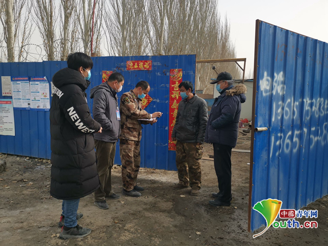 為斷絕疫情傳播途徑,秦洪澤帶領團隊,在連隊大門處設檢查卡點,組織清運公共區域垃圾。同時,他還帶人一起進行不間斷地巡邏和開展宣傳工作。“戴口罩,勤洗手,多通風,少出門,少聚集”,工作隊通過大喇叭、宣傳手冊、快板、順口溜等多種通俗易懂的方式,給職工群眾宣傳防控知識和有關政策措施。