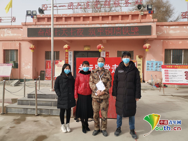 秦天儀的母親杜麗是石河子大學醫學院(塔里木大學)分院的一名干部,也是一名有著20多年臨床經驗的護士。春節前,杜麗放棄了回石河子與父母團聚的時光,并把21歲的兒子秦天儀、13歲的女兒杜佳潤一起帶到連隊幫忙,與丈夫一起奮戰在抗疫一線。