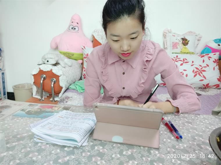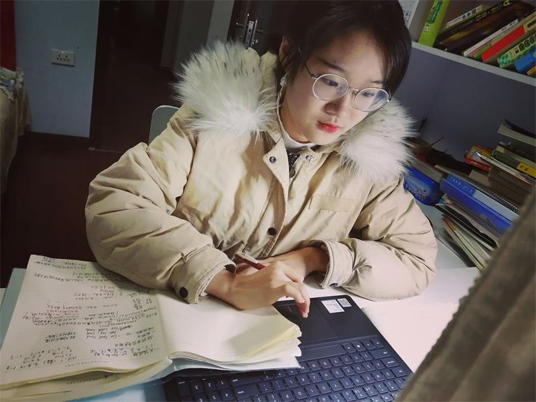 陳韻宇在家網(wǎng)上學(xué)習(xí)。 塔里木大學(xué)宣傳部供圖