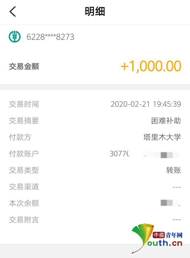 塔里木大學學生工作處資助管理中心副主任閆友文告訴記者,新冠肺炎疫情發(fā)生后,學校十分關心湖北籍學生特別是家庭經(jīng)濟困難學生的身體狀況和生活情況,及時開展暖心資助工作。