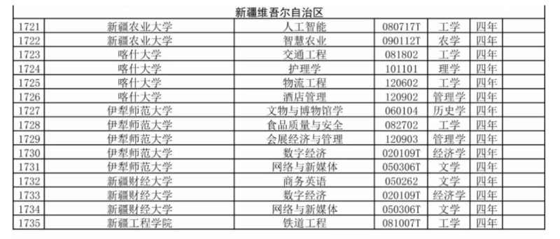 新增專業中,伊犁師范大學、塔里木大學均新增了文物與博物館學專業,新疆農業大學新增智慧農業、人工智能等專業,新疆財經大學新增數字經濟、網絡與新媒體等專業。自治區教育廳相關負責人表示,新增專業彌補了我區有關專業的布點空白,進一步優化了高校專業結構。新增專業高校要進一步優化人才培養方案,加強師資配備,改進教學和實習實踐條件等,加強我區經濟社會發展重點領域急需學科專業建設和人才培養。