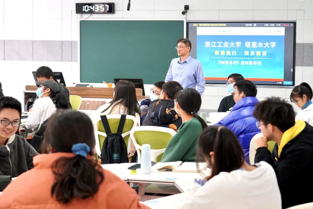 這是化學工程學院課程首次走進西部高校。直播課堂利用互聯網與沉浸式直播互動教室的優勢,將課堂“原汁原味”地跨越時空,“搬”到塔里木大學。