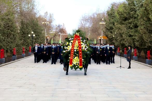 天地英雄氣,千秋尚凜然。清明時節,緬懷英烈祭忠魂,撫今追昔思奮進。4月2日一大早,塔里木大學全體處級干部與師生代表,手捧鮮艷的小黃菊,一同來到紅色文化廣場,莊嚴列隊站在王震將軍銅像前,懷著無比崇敬的心情,緬懷先烈的豐功偉績和崇高精神,表達深切悼念和無限敬仰,更表達秉承烈士遺志,傳承紅色血脈的堅定信心決心。