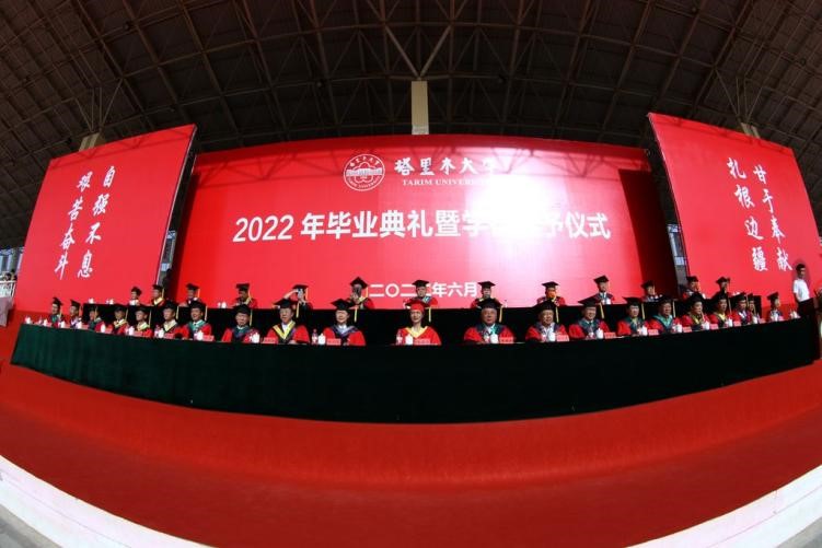 上午9時30分,隨著奏唱國歌聲和軍樂團演奏聲,塔里木大學2022年畢業典禮暨學位授予儀式拉開帷幕。校領導、有關部門、各學院主要負責人同畢業生,家長、教師、在校生代表,一起見證這一喜悅時刻。典禮設主會場和分會場,線上線下同步進行。
