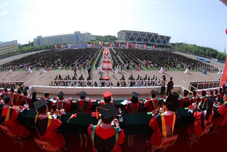 塔里木大學校領導,各部門、各學院主要負責人,導師代表,優秀畢業生代表,從紅地毯走向主席臺。全體畢業生身著學士學位服,整齊地坐在綠茵場上,一張張笑臉,透露著喜悅和難舍。