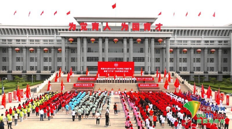 中國青年網阿拉爾7月1日電(通訊員 楊寶仁)7月1日上午,塔里木大學2022年“萬名師生下基層”暨暑期“三下鄉”社會實踐出征儀式在綜合教學樓前舉行。