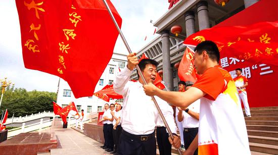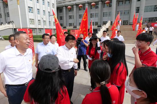 塔里木大學(xué)黨委書記趙光輝為出征團(tuán)隊(duì)一一授旗,并宣布塔里木大學(xué)2022年“萬名師生下基層”暨暑期“三下鄉(xiāng)”社會(huì)實(shí)踐團(tuán)啟程出征。