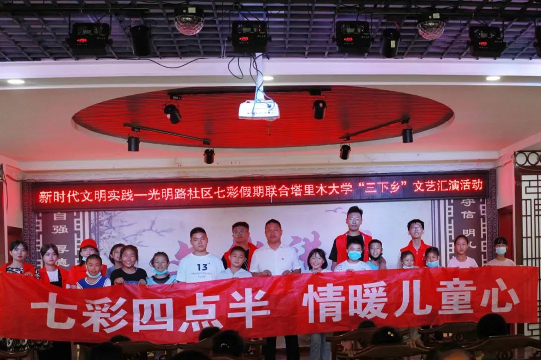 7月2日,塔里木大學(xué)“七彩四點(diǎn)半,情暖兒童心”實(shí)踐團(tuán)與十團(tuán)社工站在阿拉爾市十團(tuán)光明路社區(qū)開展文藝匯演活動(dòng)。