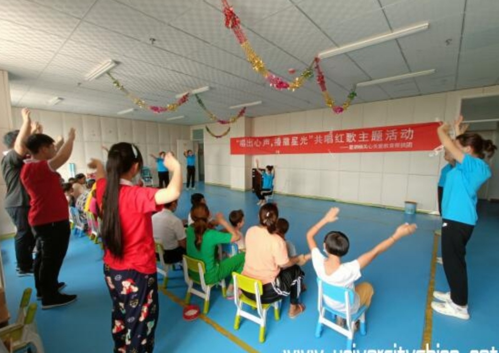 為引導和幫助廣大特殊兒童在社會課堂中“受教育、長才干、作貢獻”,堅定信念聽黨話、跟黨走,2022年7月4日,塔里木大學暑期“三下鄉”社會實踐團隊“星胡楊關心關愛教育幫扶團”積極響應黨的號召,于喀什市殘疾人聯合會康復中心開展“共唱一首紅色歌曲”活動。