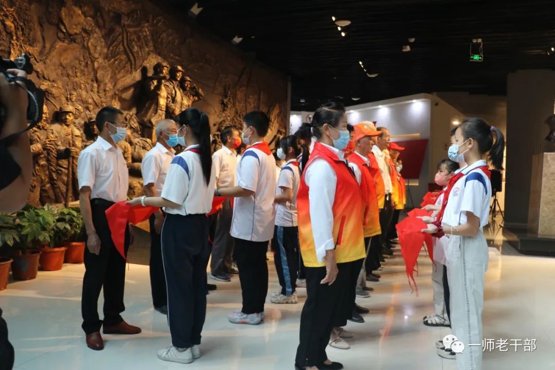 儀式上,少先隊員代表整齊排列,向“五老”敬獻紅領巾、行隊禮,武琳琳帶領“五老”代表、青年黨員重溫入黨誓詞,少先隊員重溫入隊誓詞,表達了他們一心向黨,不忘初心使命,堅定跟黨走的決心。