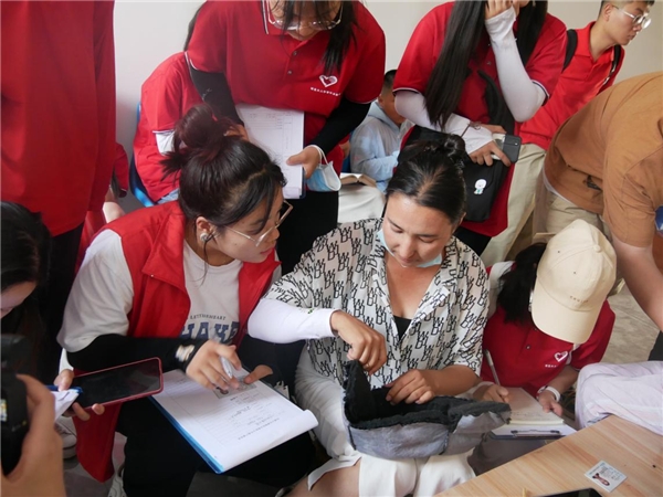 圖為三下鄉成員馬燕與傳承人海力千木·克比爾。通訊員 王鑫東 攝