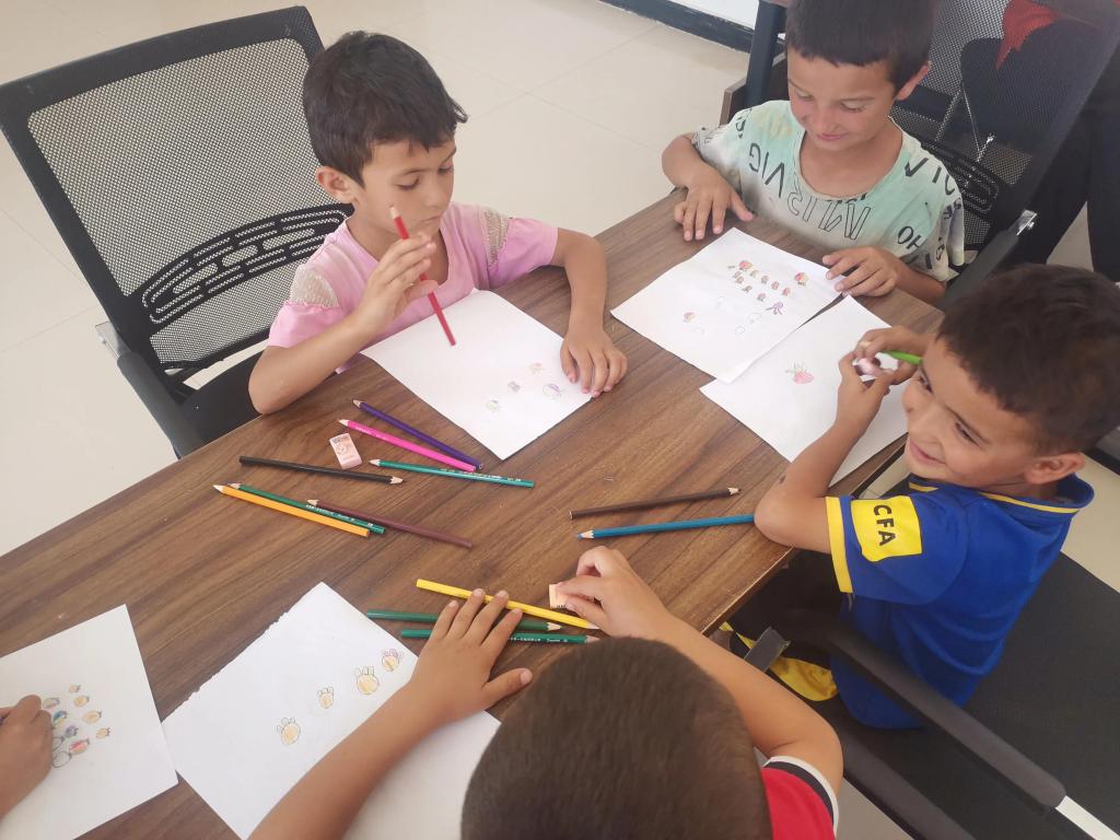 圖為當地小朋友參加隊員組織的繪畫培訓,小朋友臉上各個都洋溢著笑容。