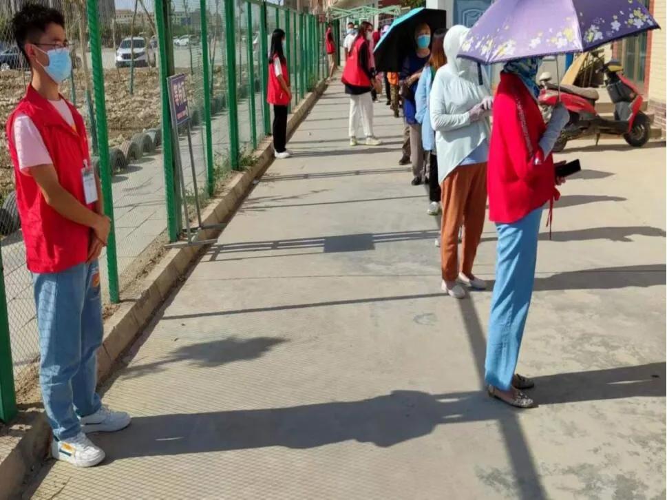 盛夏時節(jié),暑氣炎炎,但胡楊小隊仍舊熱情洋溢,全天就位于核酸檢測現(xiàn)場,不叫苦、不喊累,用實際行動詮釋了胡楊精神并贏得了社區(qū)居民的贊許。核酸檢測是我們把好疫情防控大關的重要一環(huán),胡楊小隊為參與了此次志愿服務感到十分驕傲,為抗疫防控奉獻一份自己的力量感到十分自豪。在今后社區(qū)服務工作中胡楊小隊將始終用實際行動踐行“為人民服務”的初心和使命。(文:司睿琪 黃帥 攝:張詩博 孫勃龍)
