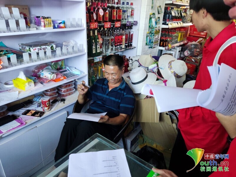 圖為實踐團隊成員進行飲用水安全宣傳的圖片。中國青年網通訊員 崔騰 攝