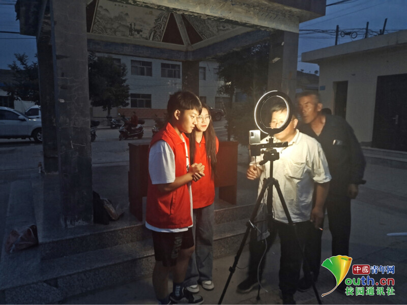 圖為團隊成員與當地村民一起直播推廣農產品。 中國青年網通訊員 李明霞 供圖