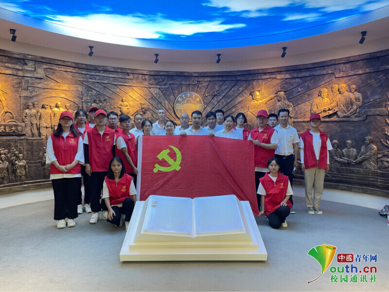 圖為宣講團成員與十團十八連黨員干部于塔里木大學校史館合影。 中國青年網(wǎng)通訊員 杜艷煒 攝