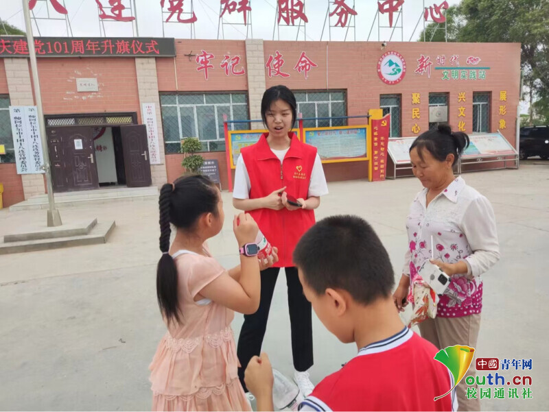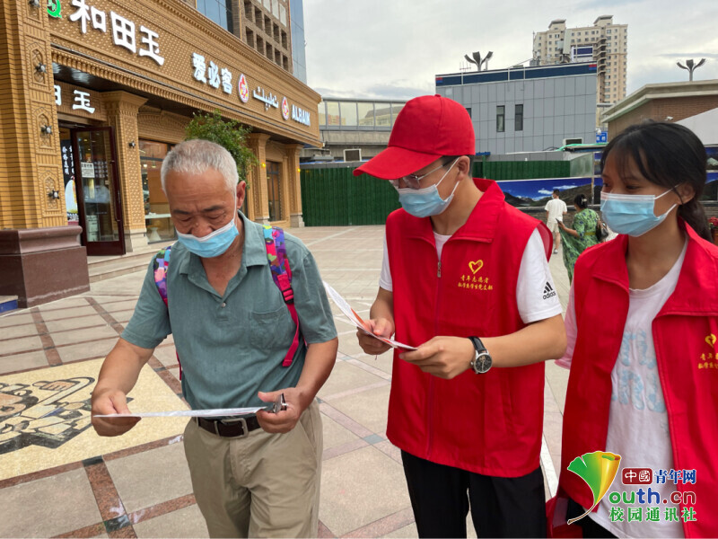 圖為宣講團成員在社區(qū)發(fā)放宣傳手冊。中國青年網(wǎng)通訊員 杜艷煒 攝