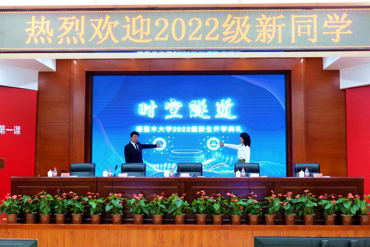 上午10:00,伴隨著雄壯的奏唱國(guó)歌聲,塔里木大學(xué)2022級(jí)新生開學(xué)典禮暨開學(xué)第一課拉開序幕。黨委書記趙光輝,黨委副書記、校長(zhǎng)張愛萍共同開啟時(shí)空隧道。廣大新同學(xué)及家長(zhǎng)們跟隨著鏡頭畫面,穿越時(shí)空隧道,云游塔大校園,共迎開學(xué)典禮。