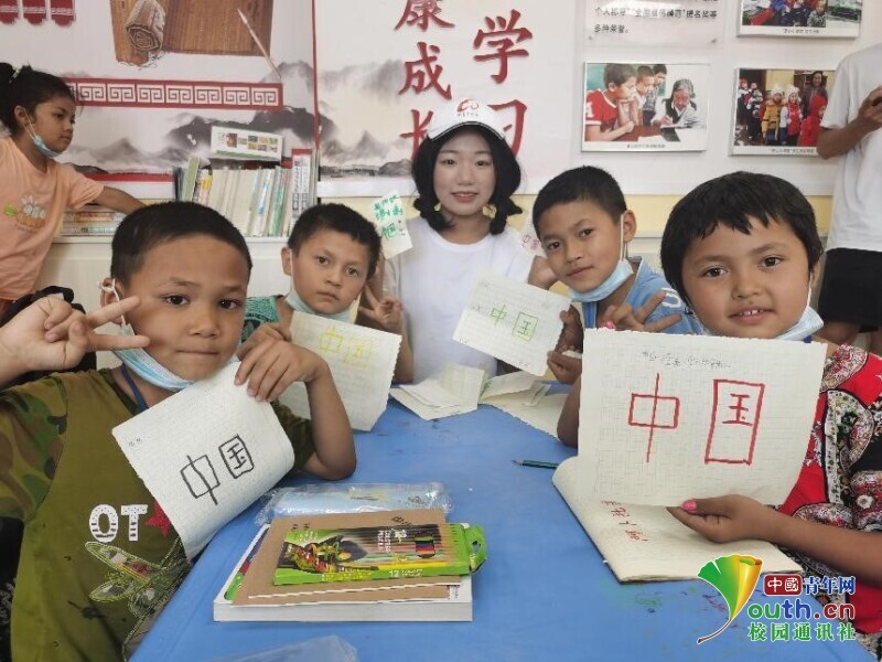 團隊隊長李明洋、隊員麗娜.托合塔爾別克將前期開展活動所尋到和自己理解的五老精神在講臺上以自編小品的形式講給孩子們聽,將這些優(yōu)秀的精神品志講給孩子們聽,希望他們能學習、理解、擁有這種精神,為祖國、家鄉(xiāng)的建設發(fā)展,為中華民族偉大復興貢獻自己的一份力量。小朋友們在紙上寫下中國和他們的名字,伴隨著紙上的一筆一畫他們那充滿稚嫩的臉上洋溢著自豪,眼神里充滿了陽光和花香。