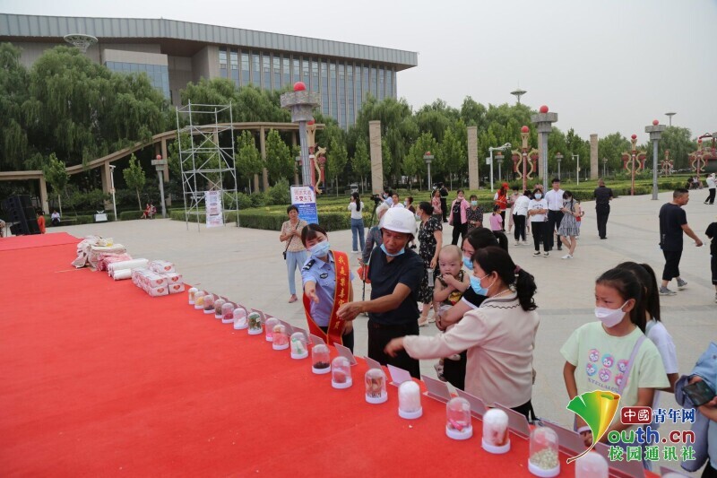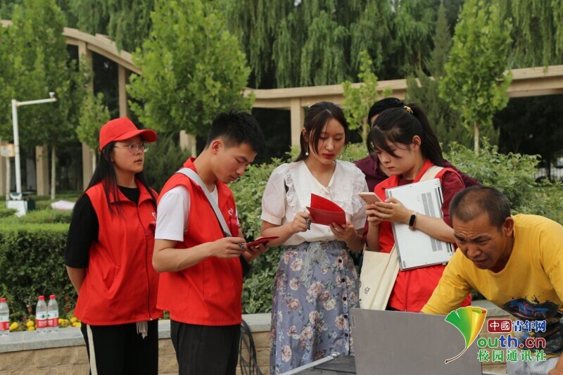 圖為團隊成員給過往群眾分發禁毒防艾宣傳單和禮品。中國青年網通訊員 尹亞偉 供圖