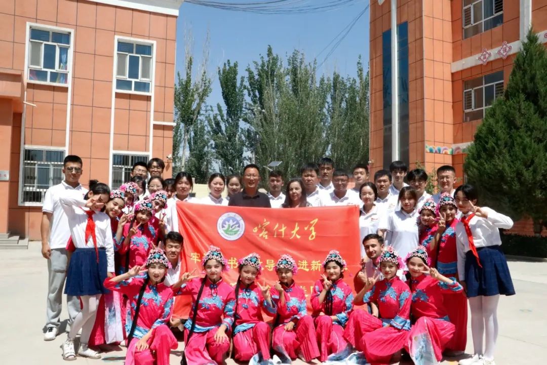 喀什大學(xué)暑期社會實(shí)踐團(tuán)與托克扎克鎮(zhèn)中心小學(xué)師生合影