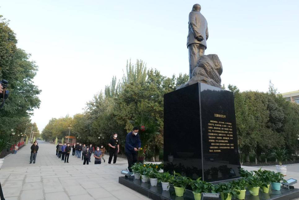 緬懷革命先烈,賡續(xù)紅色血脈。9月30日上午,在烈士紀念日之際,塔里木大學在紅色文化廣場舉行向王震將軍銅像敬獻花籃儀式。