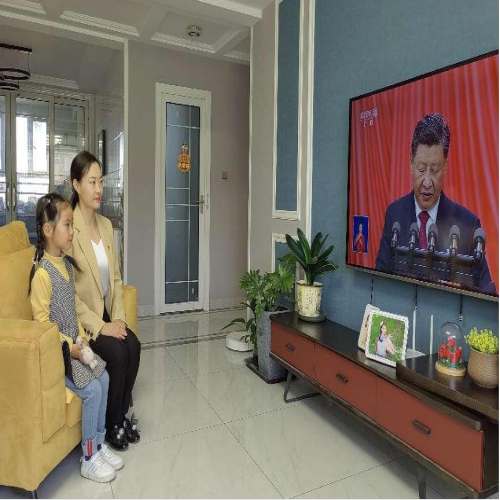 塔里木大學經濟與管理學院工商管理類2022級6班學生李美潔,與家人一起收看大會直播。