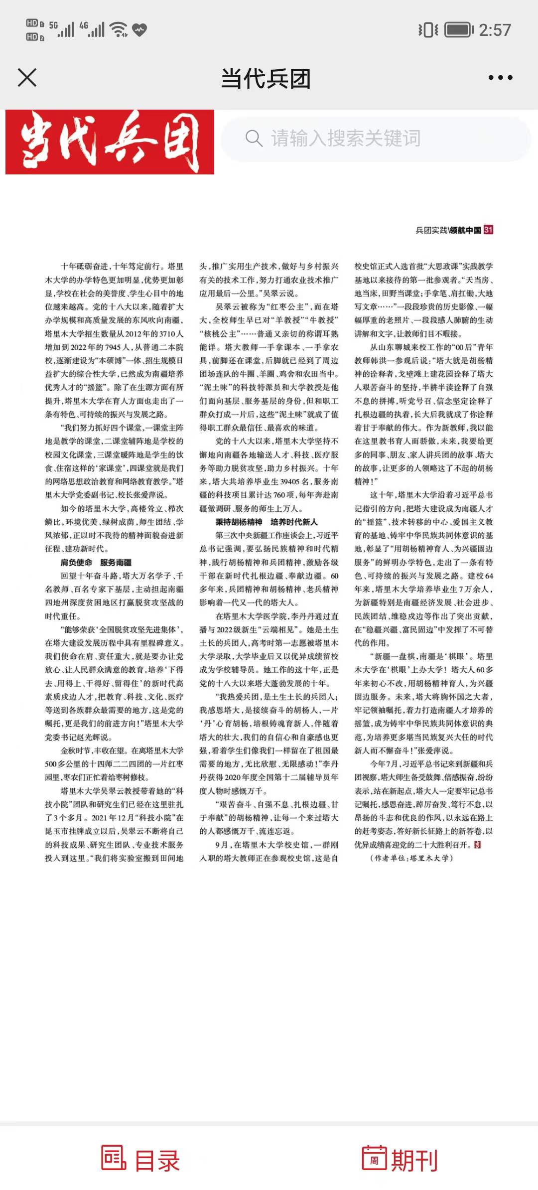 “能夠榮獲‘全國脫貧攻堅先進集體’,在塔大建設發展歷程中具有里程碑意義。我們使命在肩、責任重大,就是要辦讓黨放心、讓人民群眾滿意的教育,培養‘下得去、用得上、干得好、留得住’的新時代高素質戍邊人才,把教育、科技、文化、醫療等送到各族群眾最需要的地方,這是黨的囑托,更是我們的前進方向!”塔里木大學黨委書記趙光輝說。
