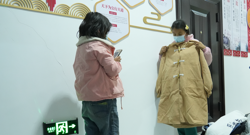 在衣物發放現場,聞訊趕來的群眾絡繹不絕,他們很快挑上了自己心儀的衣服,有的還熱心幫助其他群眾出主意、挑衣服,現場充滿了歡聲笑語。