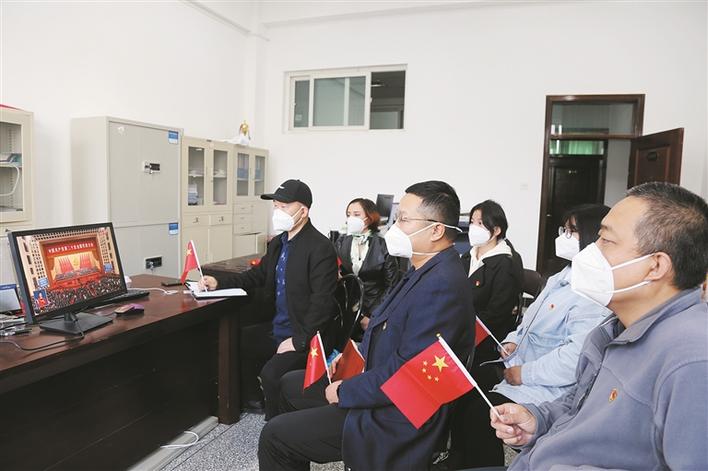 塔里木大學動物科學學院教師收看黨的二十大開幕會實況直播(資料圖片)。 塔里木大學 提供