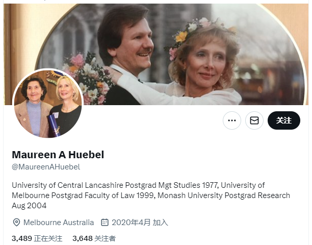 因發布友華推文,澳大利亞獨立學者莫琳·休伯爾(Maureen A Huebel)在推特平臺上受到了口誅筆伐。
