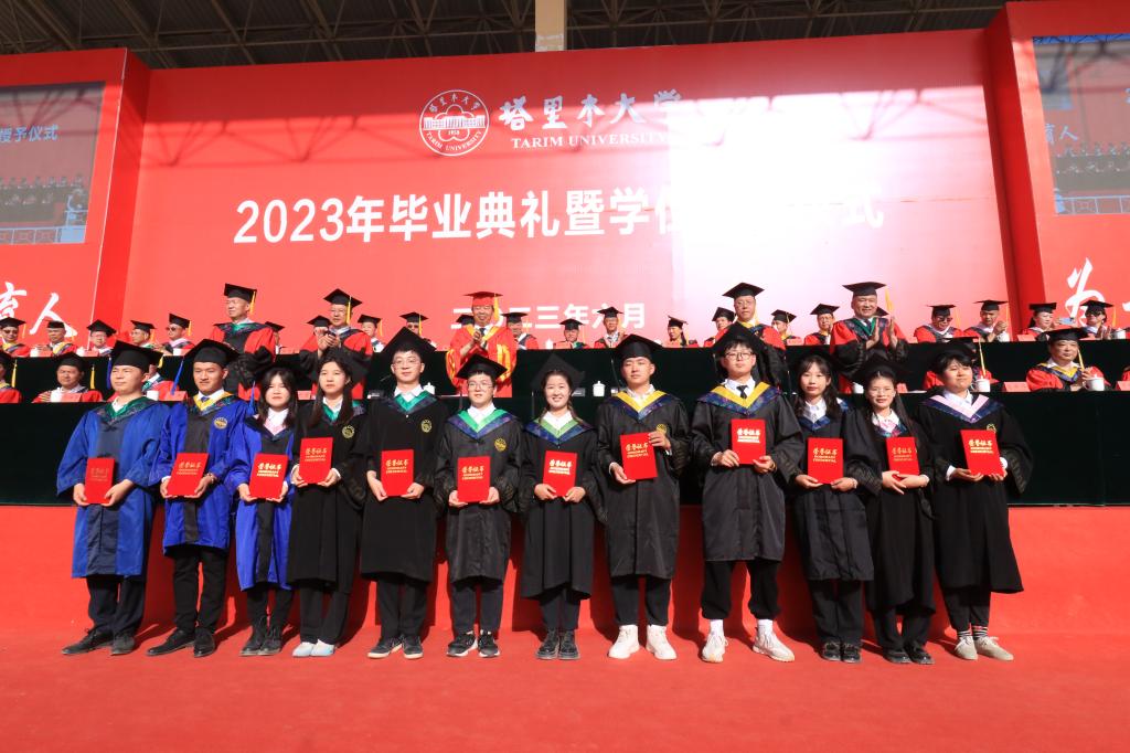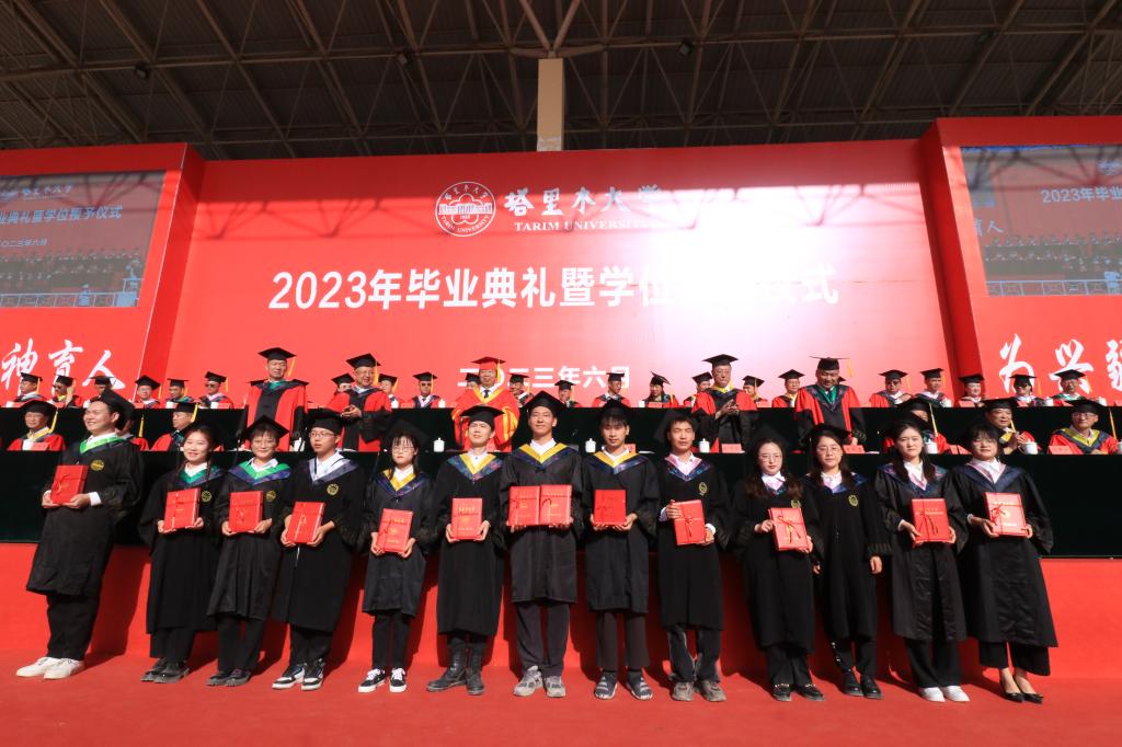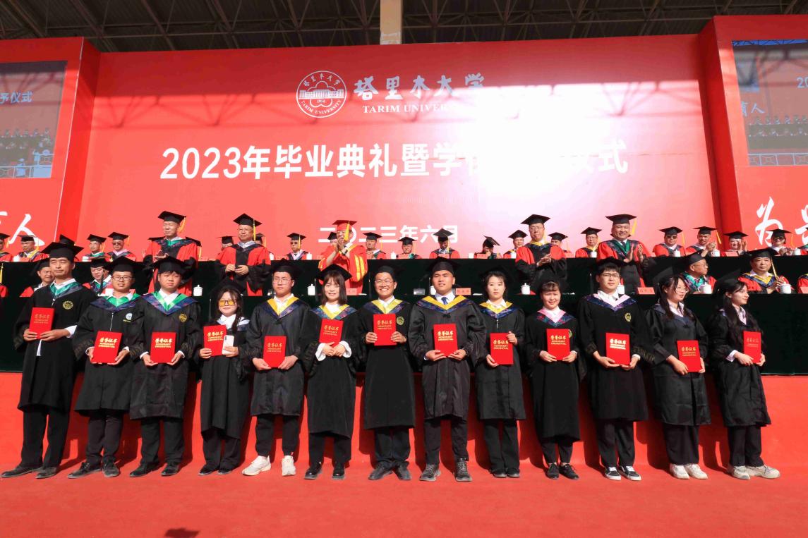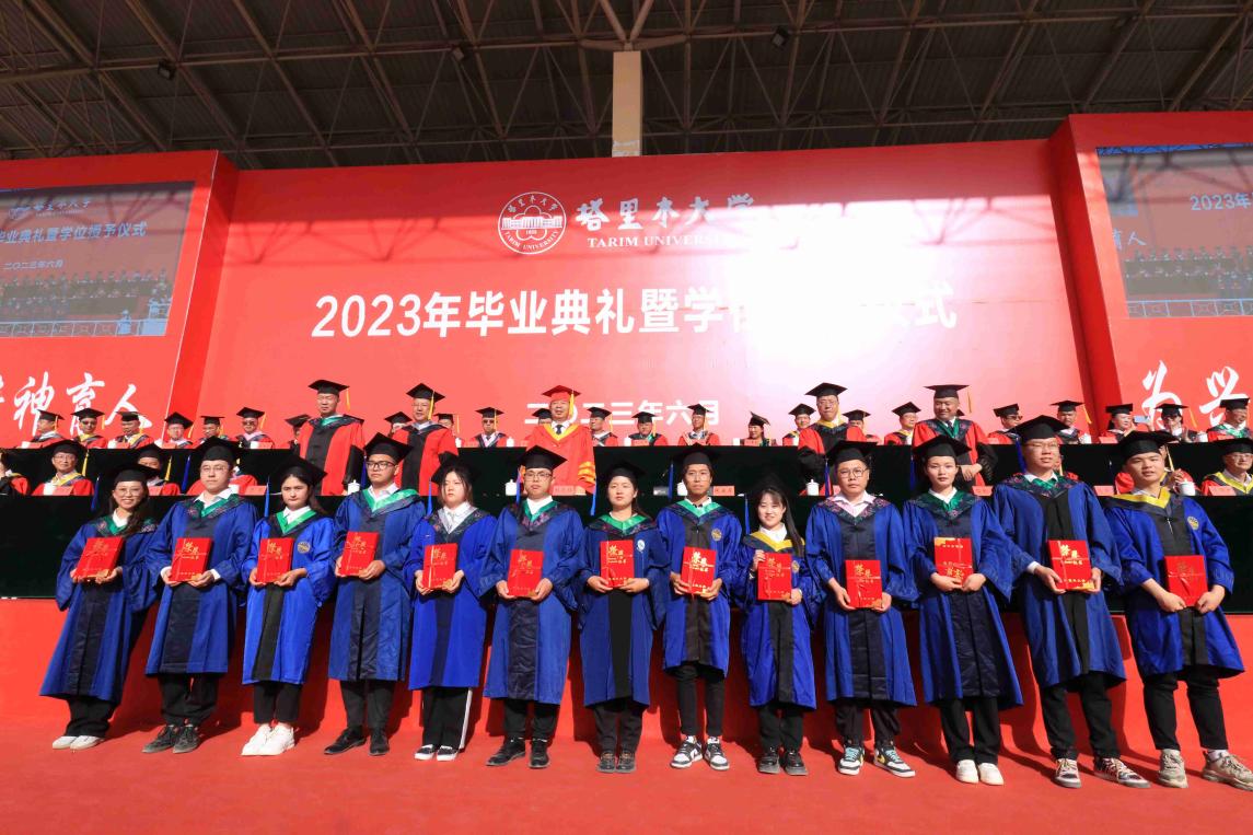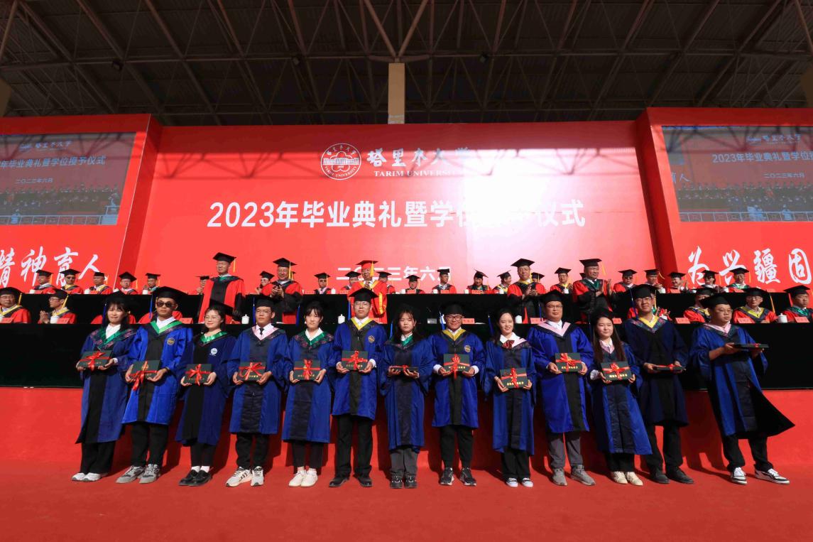 與會校領導為2023屆博士研究生、碩士研究生、本科畢業生代表頒發了畢業證書,為兵團級優秀畢業生、校級優秀畢業研究生、校級本科優秀畢業生代表頒發了榮譽證書。