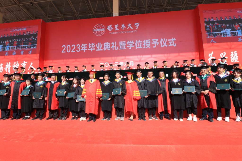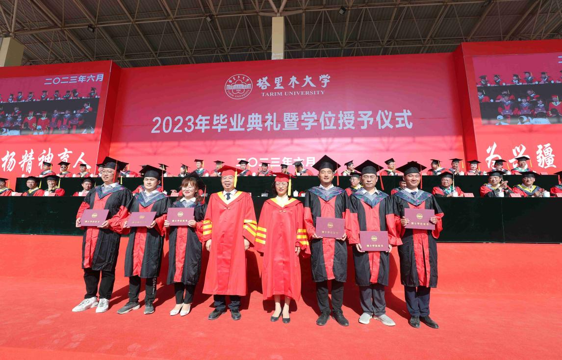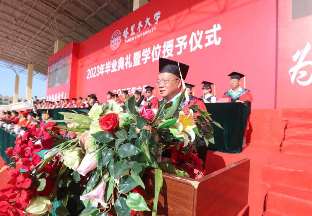 黨委常委、副校長曲義勇宣讀了畢業及學位授予的相關決定:《塔里木大學關于準予2023屆本??飘厴I生畢業的決定》《塔里木大學關于準予2023屆研究生畢業的決定》《塔里木大學關于授予2023屆本科畢業生學士學位的決定》《塔里木大學關于授予2023屆研究生碩士學位的決定》《塔里木大學關于授予2023屆研究生博士學位的決定》。