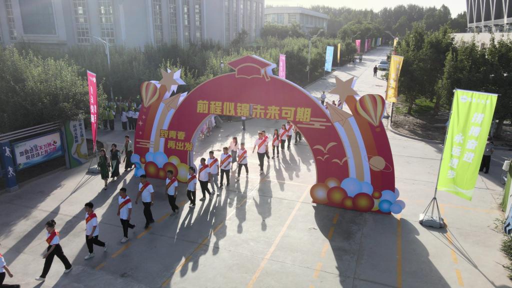 前程似錦,未來可期。致青春,再出發。一大早,畢業生們身著畢業服、頭戴畢業帽,陸續通過送別路和畢業門,走進西區運動場、走進畢業典禮現場。