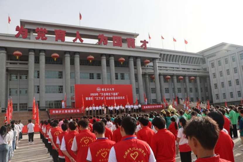 用腳步丈量祖國大地,用眼睛發(fā)現(xiàn)中國精神,用耳朵傾聽人民呼聲,用內(nèi)心感應(yīng)時代脈搏。7月7日上午,伴隨著雄壯的奏唱國歌聲,塔里木大學(xué)2023年“萬名師生下基層”暨暑期“三下鄉(xiāng)”社會實踐出征儀式在綜合樓前舉行。