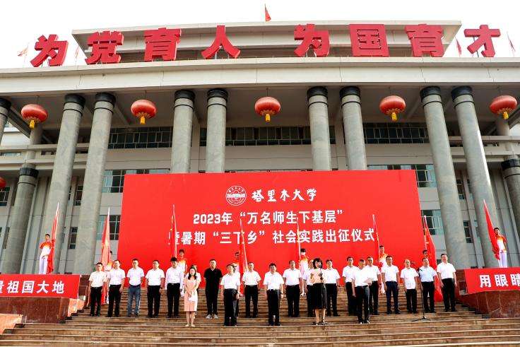據(jù)了解,2023年塔里木大學(xué)‘萬名師生下基層’暨暑期‘三下鄉(xiāng)’社會實踐活動共組建實踐團隊522支,其中,全國重點團隊9支、兵團重點團隊15支、校級重點團隊129支、校級一般團隊36支,共有5180名學(xué)生、400余名老師參加。將圍繞理論宣講、國情社情觀察、鄉(xiāng)村振興、關(guān)愛幫扶、文藝下鄉(xiāng)、青年紅色筑夢之旅、鑄牢中華民族共同體意識、“返家鄉(xiāng)”實踐9個方向開展豐富多彩的社會實踐活動。校領(lǐng)導(dǎo)于軍主持出征儀式。趙峰華出席,學(xué)校相關(guān)部門、學(xué)院主要負責(zé)同志,全體指導(dǎo)教師、社會實踐團隊學(xué)生參加。