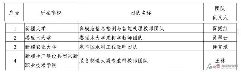 近日經教育部評審公示擬確定第三批“全國高校黃大年式教師團隊”共199個其中新疆(含兵團)有4個團隊入選