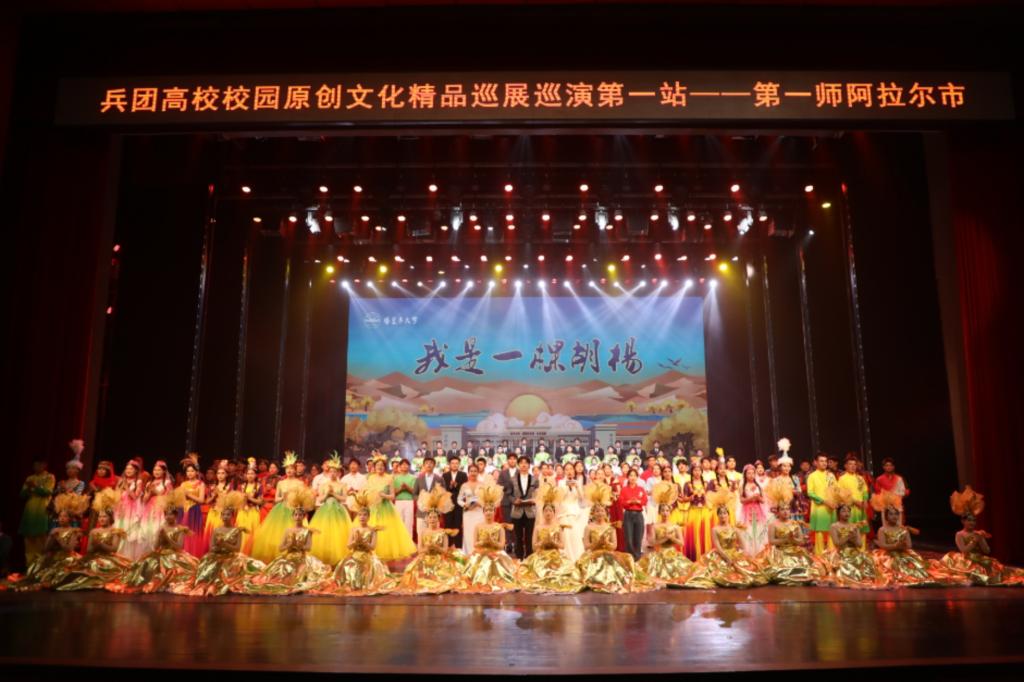 4月24日,新疆生產建設兵團高校校園原創文化精品巡展巡演在一師阿拉爾市啟動,由塔里木大學師生編排的舞臺劇《我是一棵胡楊》亮相阿拉爾大劇院。