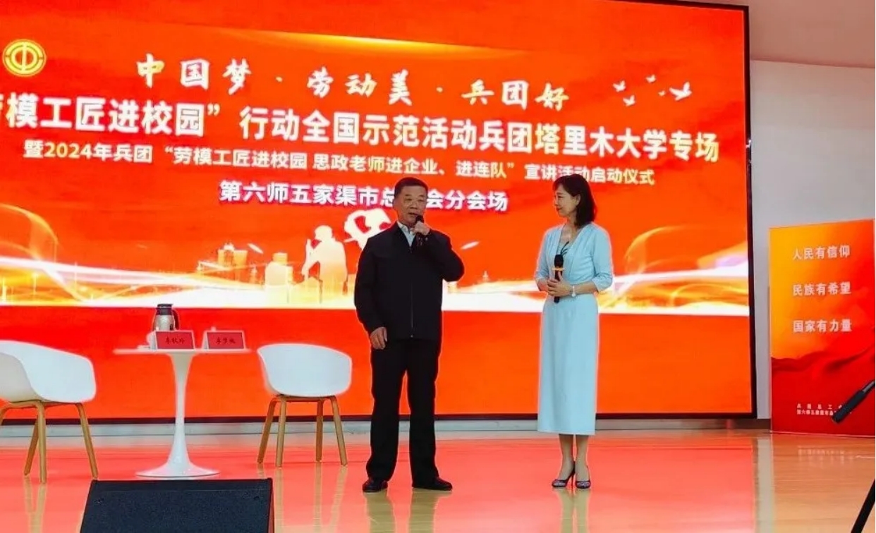 5月30日,由全國總工會宣傳教育部指導(dǎo)、新疆生產(chǎn)建設(shè)兵團總工會主辦的“勞模工匠進校園”行動全國示范活動兵團塔里木大學(xué)專場成功舉辦。2024年兵團“勞模工匠進校園 思政老師進企業(yè)、進連隊”宣講活動也同步啟動。兵團總工會黨組成員、副主席黃少峰出席活動并在宣講活動啟動儀式上講話。