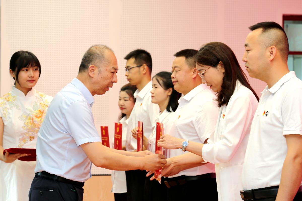 兵團總工會黨組成員、副主席黃少峰在塔里木大學主會場向宣講團師資庫成員頒發(fā)聘書