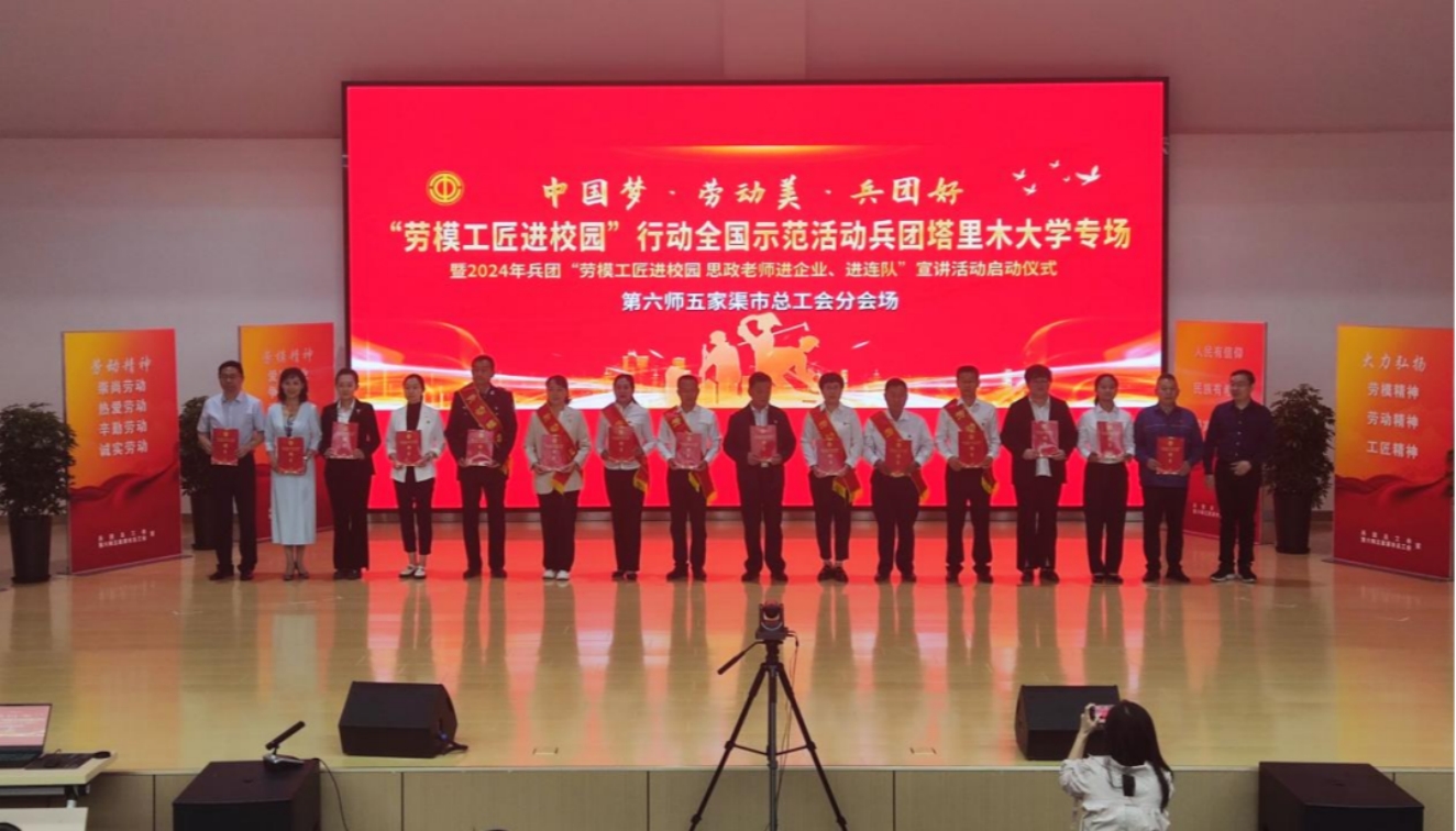 5月30日,由全國總工會宣傳教育部指導、新疆生產建設兵團總工會主辦的“勞模工匠進校園”行動全國示范活動塔里木大學專場成功舉辦。2024年兵團“勞模工匠進校園 思政老師進企業、進連隊”宣講活動也同步啟動。兵團總工會邀請了全國道德模范、全國總工會副主席(兼職)郭明義,大國工匠、自治區總工會副主席(兼職)譚文波,自治區勞動模范、兵團總工會副主席(兼職)陳俊業,全國先進工作者李夢桃,全國勞動模范馬軍武等200名勞模、工匠、思政老師作為宣講活動講師。今年,兵團各級工會預計將開展254場勞模工匠、思政老師“雙進”宣講活動。