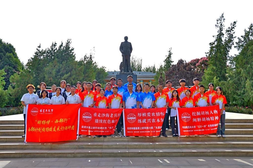銅像聳立,松柏挺立。6月29日早晨,塔里木大學胡楊·融媒體中心的師生們,著裝整齊、神采飛揚,列隊站在紅色文化廣場王震將軍銅像前,舉行2024年暑期“三下鄉”社會實踐活動出征儀式。