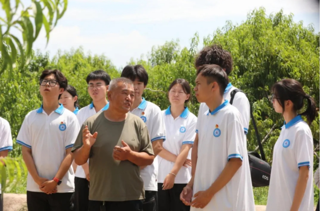 實踐團成員聽取一四三團九連職工講解蟠桃種植技術。