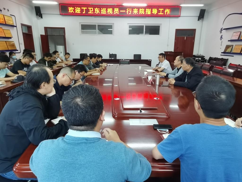 報告結束后,丁衛東巡視員一行在工科樓229會議室與機電院黨委副書記、院長王旭峰,副院長張有強、徐志佳及教師代表進行座談。