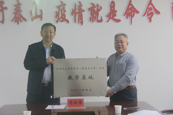 雙方簽訂了《石河子大學(xué)醫(yī)學(xué)院(塔里木大學(xué))分院與阿克蘇地區(qū)第二人民醫(yī)院關(guān)于建立教學(xué)基地的協(xié)議書(shū)》,并舉行了授牌儀式。