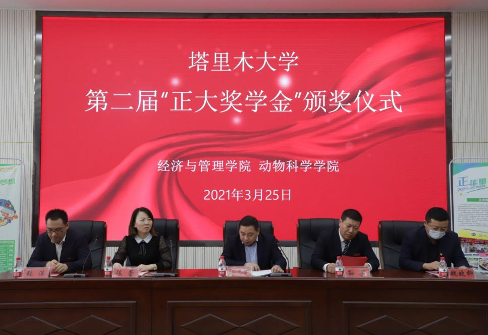 3月25日,塔里木大學第二屆“正大獎學金”頒獎典禮在文科實驗樓報告廳舉行。正大集團新疆區禽料銷售總經理孫巖,正大集團新疆區人力資源管理部經理張湛,經管院黨委副書記、院長蔣志輝,塔里木大學學生工作部副部長陳蕾,動科院黨委副書記魏曉柳和部分師生代表參加典禮。由學院學辦副主任李新龍主持。