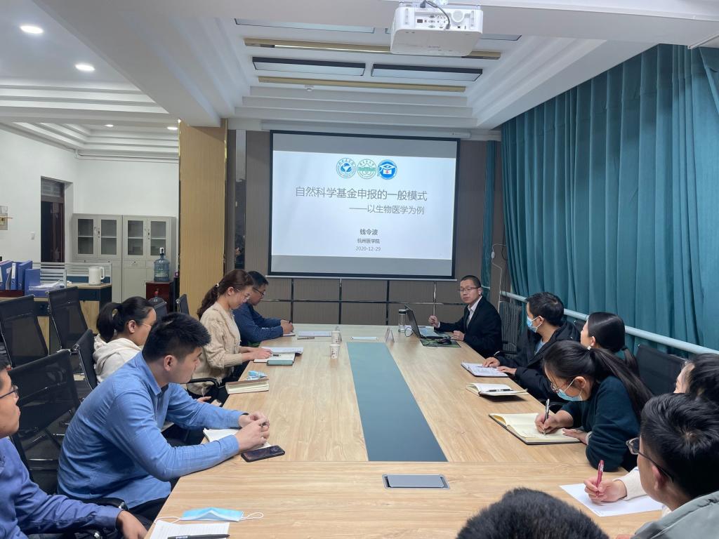12月29日晚,醫(yī)學(xué)院在老圖書館406室舉辦自然科學(xué)基金申報(bào)專題指導(dǎo)講座。校長(zhǎng)助理錢令波教授為學(xué)院全體教師作了題為“自然科學(xué)基金申報(bào)的一般模式—以生物醫(yī)學(xué)為例”的講座。講座由學(xué)院黨總支委員、副院長(zhǎng)李思源主持。