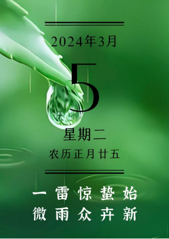 驚蟄,又名“啟蟄”,是二十四節氣中的第三個節氣?!跋U”,指“藏伏”,昆蟲入冬藏伏土中;“驚”指“驚醒”,天上的春雷驚醒蟄蟲。驚蟄時節,春雷始驚,驚醒蟄伏于地下越冬的蟄蟲。驚蟄節氣的標志性特征是春雷乍動、萬物生機盎然。