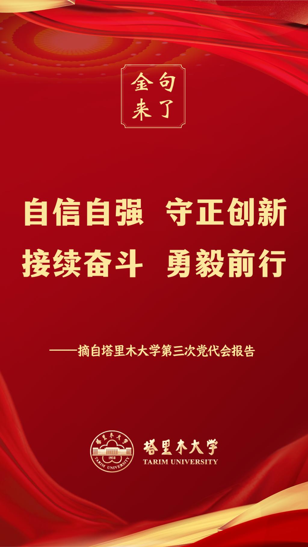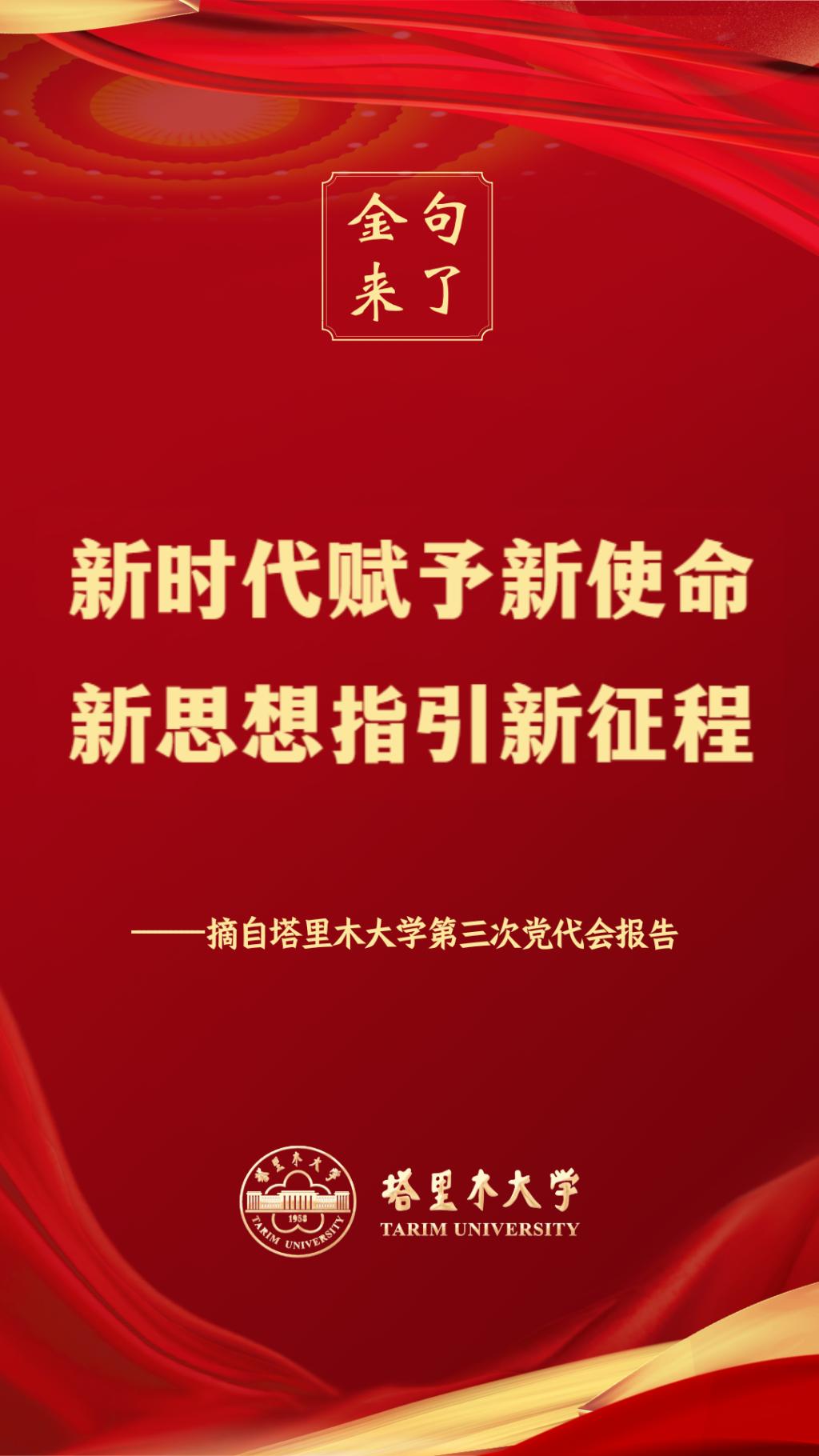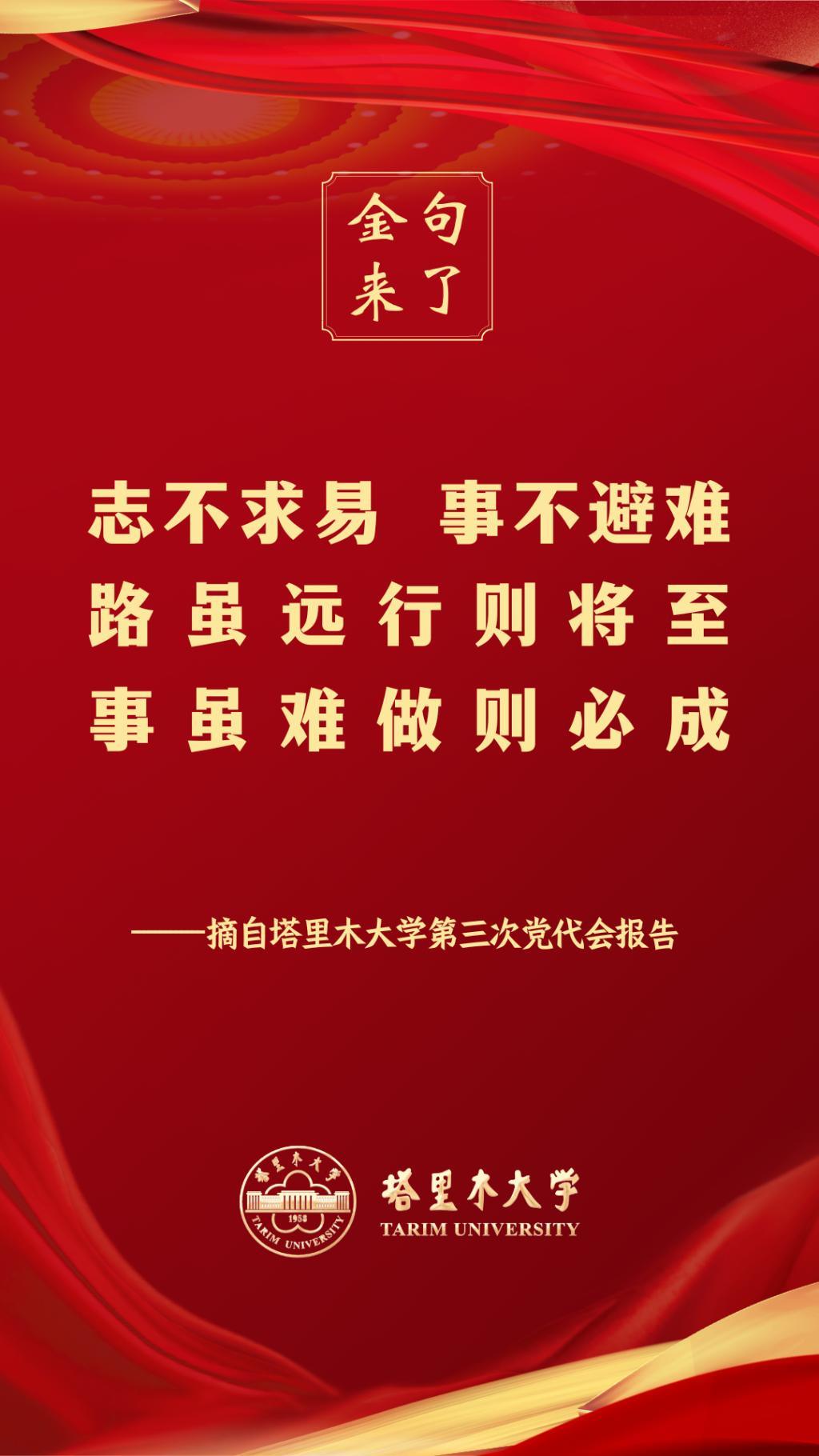 3月10日,中國共產(chǎn)黨塔里木大學(xué)第三次黨員代表大會勝利開幕。黨委書記張愛萍代表中國共產(chǎn)黨塔里木大學(xué)第二屆委員會作了題為《用胡楊精神育人 為興疆固邊服務(wù) 為加快建設(shè)兵團(tuán)特點(diǎn)南疆特色一流大學(xué)而團(tuán)結(jié)奮斗》的報告,現(xiàn)將報告中的金句進(jìn)行梳理,全校師生快學(xué)起來吧!